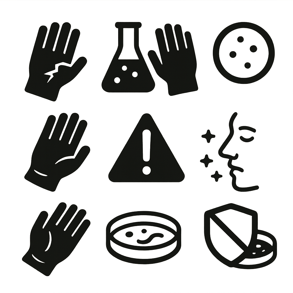 - Растет риск производственных инцидентов: прорыв перчатки при работе с химией, биоматериалом или острыми инструментами.